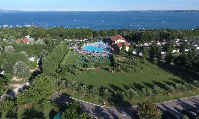 Deze 4 sterren camping aan het Gardameer biedt verschillende soorten staanplaatsen en verschillende soorten accommodaties zoals stacaravans, chalets en appartementen.