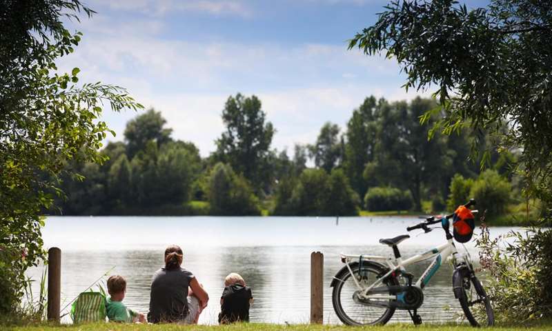 Even buiten het park ligt de Slingeplas, waar op het langzaam aflopende strand de kleintjes veilig kunnen spelen. Ook kan je hier surfles volgen.
